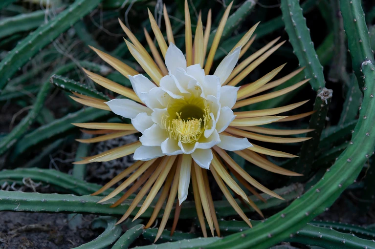 «Царицей ночи» кактус сорта селенецереус макдональди прозвали за то, что его огромный цветок, диаметр которого достигает 35 сантиметров, распускается лишь раз в год и только после захода солнца.